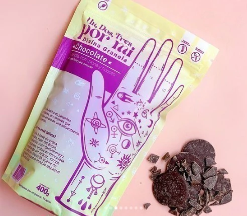 Divina granola de chocolate, hecha con chocolate de 58% sugar free, con base de avena, miel, almendras, coco, nuez del brasil, macadamias, semillas de calabaza y nuestra INCREIBLE mezcla de especias.